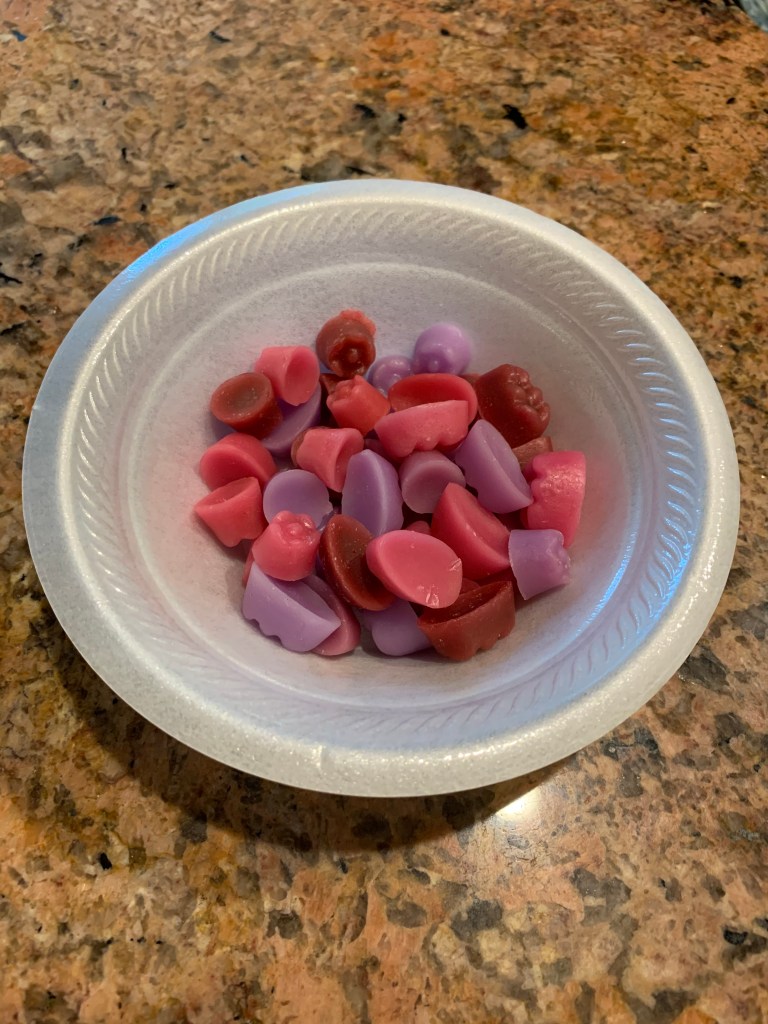 I sample one and my body simply *rejects* the horrendous thing. I realize that I was attempting eat an aromatic wax pellet, this one apparently lavender. My overwhelmed and embarrassed olfactory system sent an emergency signal to my weary brain that fergodsakes, Fenton is at it again – he has begun to eat wax. If my brain could do a facepalm it surely would.